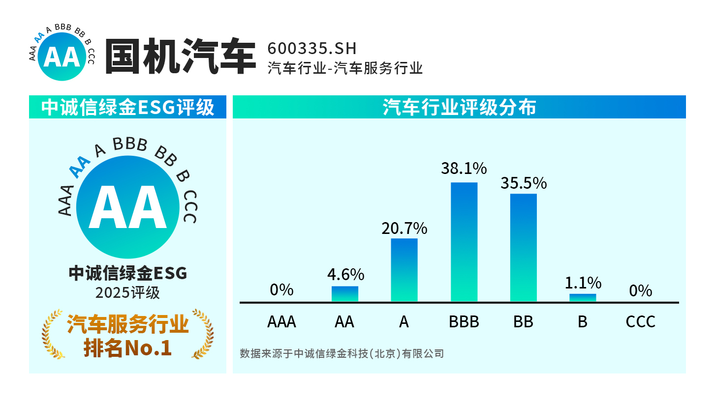 近日,國機汽車股份有限公司(證券代碼:600335.SH),榮獲所在行業(yè)中誠信綠金ESG最高評級AA,躋身上市公司前4%行列,彰顯公司在環(huán)境、社會和治理(ESG)領(lǐng)域的卓越表現(xiàn)與顯著進步。中誠信綠金是中國領(lǐng)先的ESG評級機構(gòu),構(gòu)建了一套深度融合本土實踐與國際規(guī)范的評級體系,其將A...